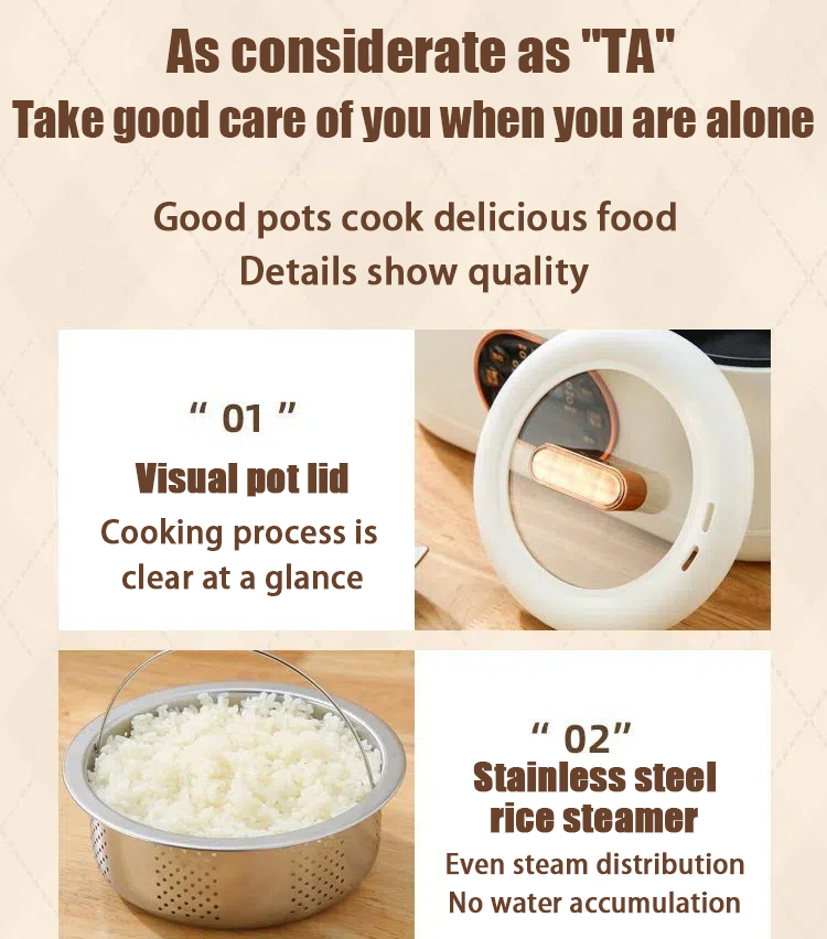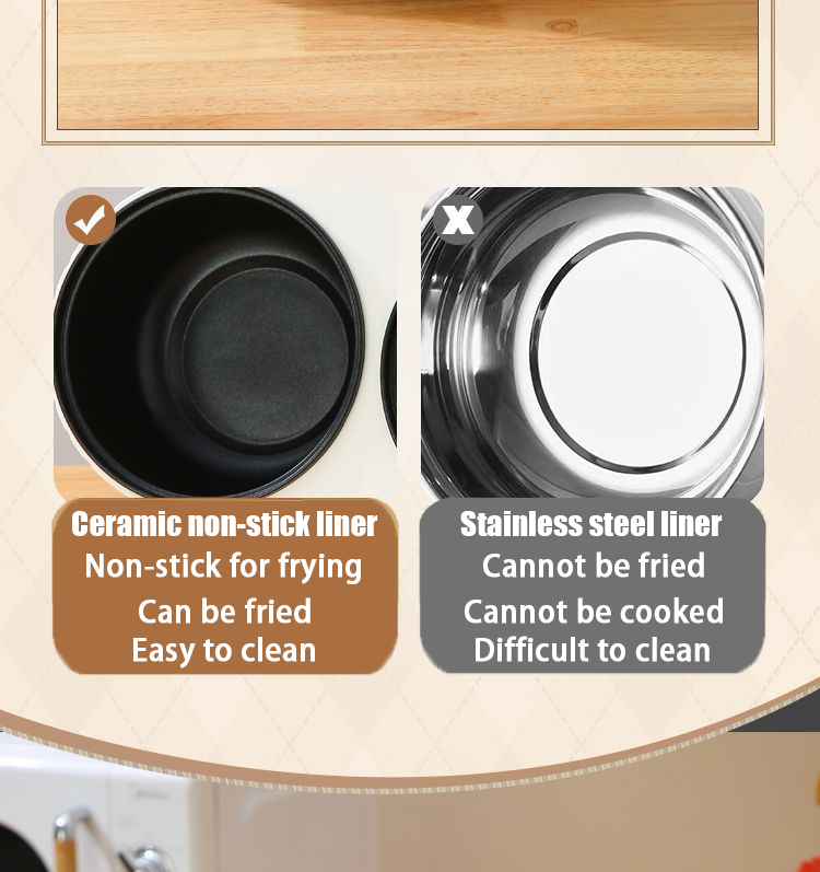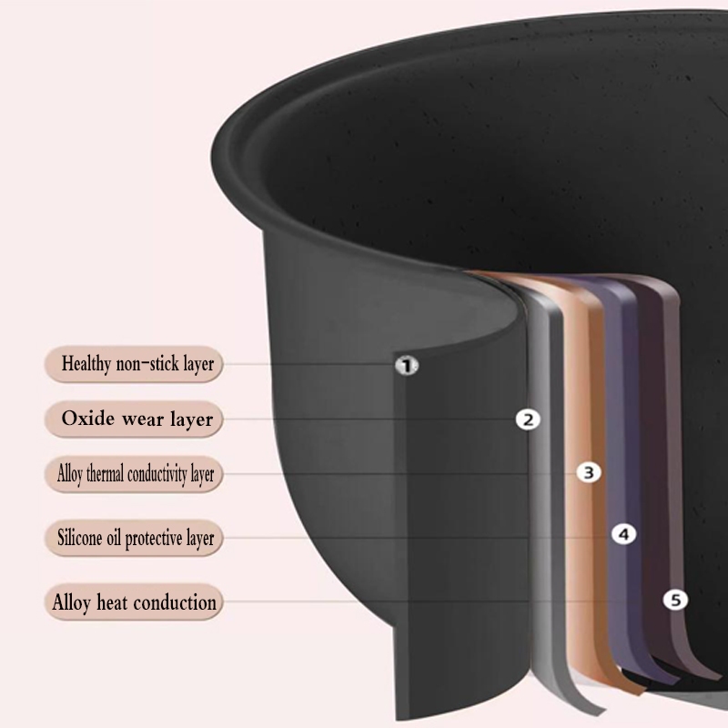 Advanced Non-Stick Lining: Made of food-grade material, it's corrosion-resistant, anti-wear, and heat-resistant, promising durability and easy cleaning. The non-stick surface also guarantees evenly cooked, delicious rice every time.