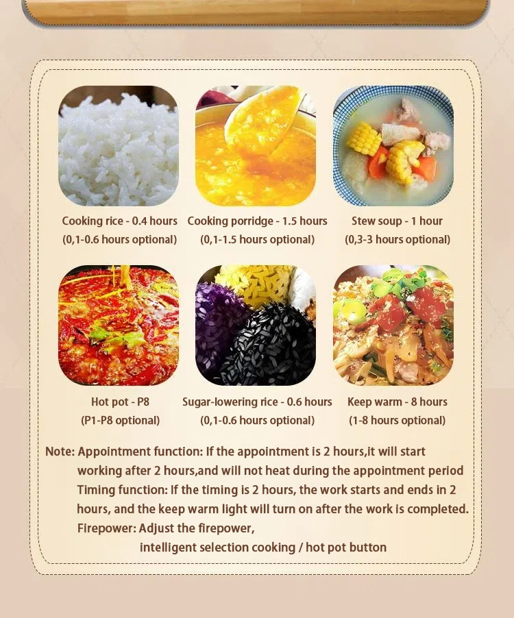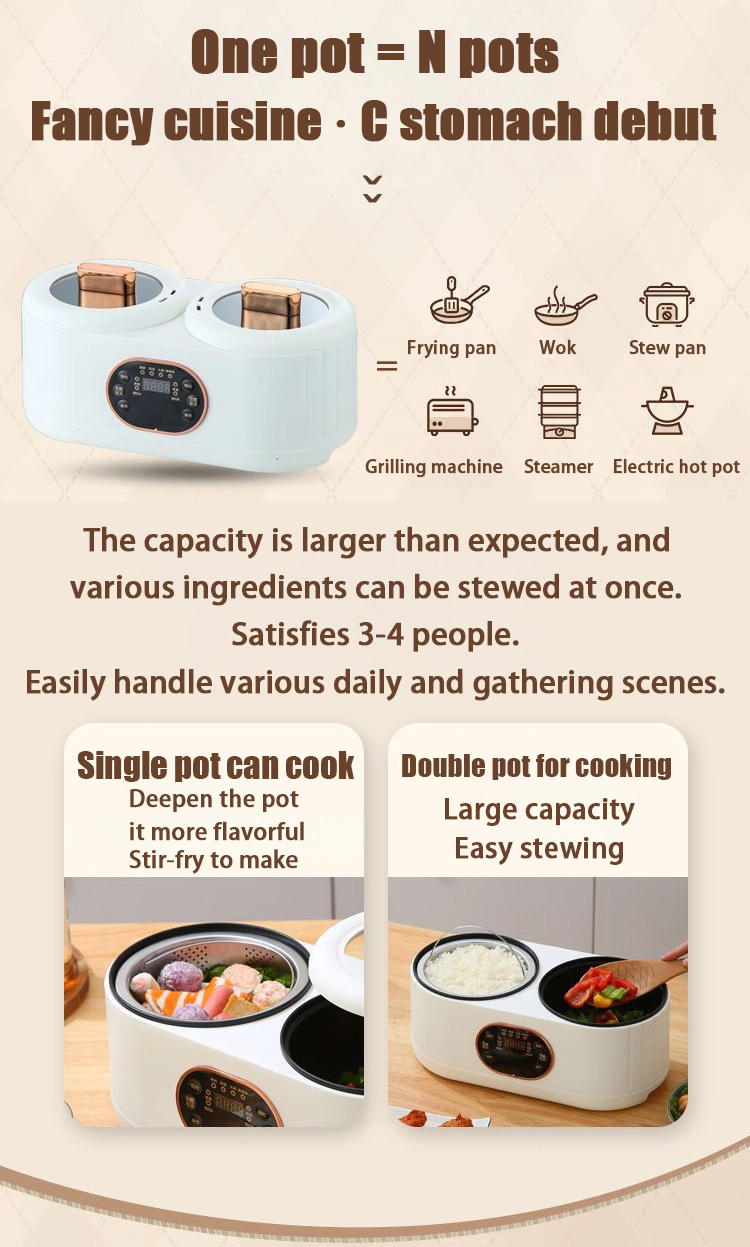 Functions: A versatile range including frying, boiling, stewing, simmering, fondue, teppanyaki, and more, making it a multipurpose kitchen essential.